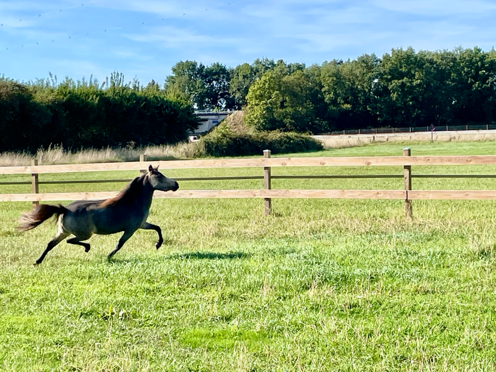 Hopelijk kan hij snel met de andere paarden in de wei spelen !!